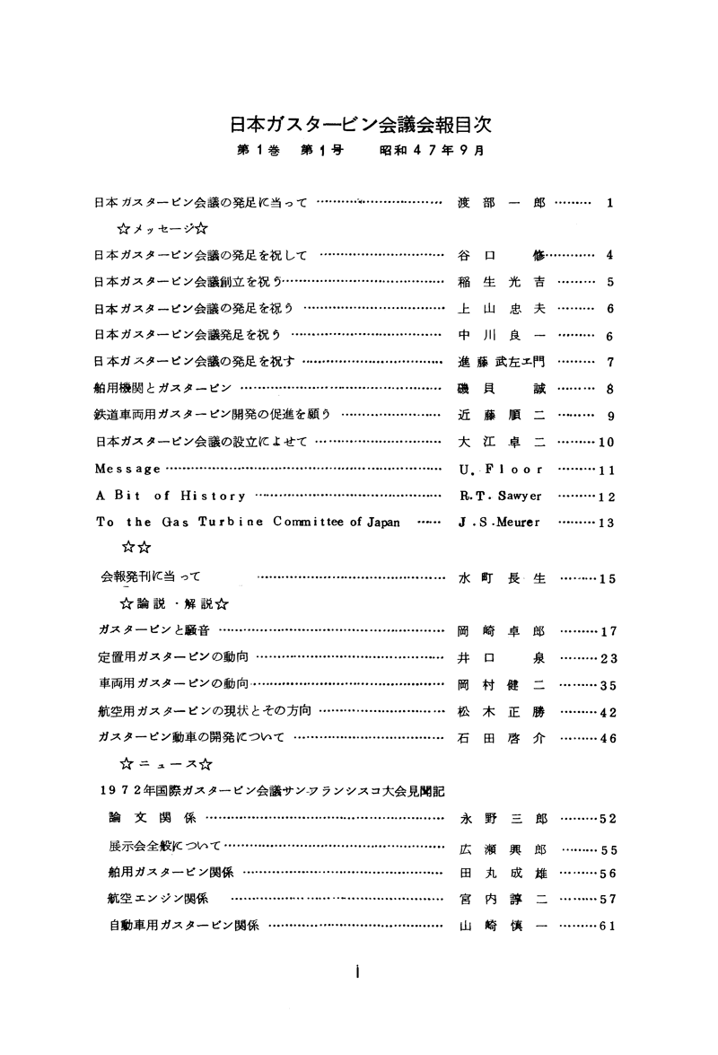 日本ガスタービン学会誌 Vol.1 No.1 1972年9月