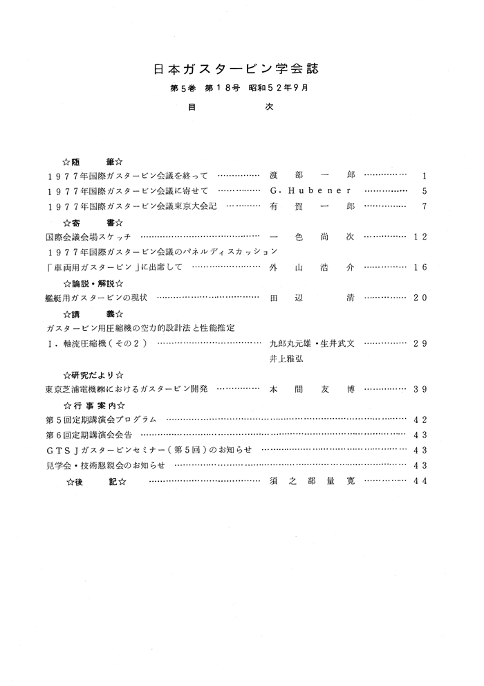 日本ガスタービン学会誌 Vol.5 No.18 1977年9月
