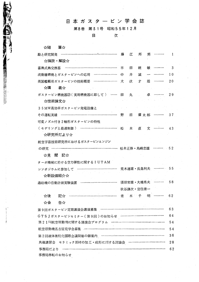 日本ガスタービン学会誌 Vol.8 No.31 1980年12月